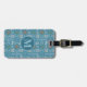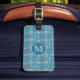 Etiqueta de bagagem da Woodland de inverno que você personaliza com sua inicial na frente e informações de contato na parte de trás. Este doce padrão nórdico de suéter de inverno é baseado no tema dos clássicos designs de malha da Fair Isle. O padrão é de círculos azuis e brancos e faixas de diamante. Cada forma tem um motivo de inverno bonito diferente. Há animais como coelho, coruja, raposa e urso. Há também um pinheiro com neve, dois flocos de neve e um pinho. Entre as designs você tem outro floco de neve e design de diamante.