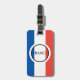 Etiqueta de bagagem da França com a bandeira francesa cores vermelha, branca e azul. Texto facial "França". Personalize o texto traseiro com suas próprias informações pessoais.