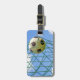 Etiqueta De Bagagem Futebol disparado na rede do objetivo
