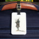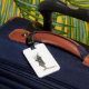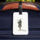 Etiqueta para bagagem com pintura de aquarela de um gaitista de kilt completo caminhando pela praia. Disponível com impressão em ambos os lados ou impressão de um lado e envelope para cartão de identificação do outro. Arte: Aquarela e grafite em lápis. Direitos autorais Dominic A. White. Todos os direitos reservados.
