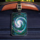 Linda pintura acrílica e tinta de uma galáxia espiral em verde escura esmeralda e roxo. Especialmente para quem ama astronomia e ficção científica. Por Alexandra Cook aka Linandara.