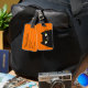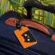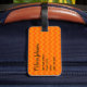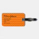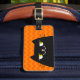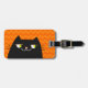 Um desenho animado simples, moderno, fofo, padrão de cromo laranja e etiqueta preta de bagagem de gato.