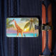 Imagem gerada por IA de uma girafa caminhando na praia durante o pôr do sol na frente, o dorso que você pode personalizar facilmente com seu nome e endereço e, se quiser, você pode mudar a cor de fundo editando esta etiqueta de bagagem.