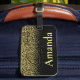 Dourada Glitter, saia do carrossel da bagagem com uma etiqueta de bagagem personalizada de Zazzle! Esturdy e à prova de tempo, esta etiqueta de bagagem está pronta para responder às exigências de viagem de qualquer guerreiro rodoviário ou espectador de aventuras. Impresso usando o processo de impressão AcryliPrint®HD, sua etiqueta de bagagem mostra designs, texto e fotos com clareza vibrante e cores brilhantes. Personalize-o e deslize um cartão de visita para qualquer cliente potencial que você encontre no aeroporto!