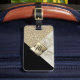 Etiqueta De Bagagem Glitter Dourado monograma, preto e mármore