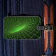 Esta etiqueta de bagagem tem um gráfico artístico.