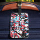 Retrorna o sinal de paz do grafite em etiquetas de bagagem.
