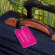 A etiqueta de bagagem de chip apresenta faixas pretas e natas largas com um sotaque cor-de-rosa magenta. Personalize a parte traseira com seu nome e detalhes de contato.
