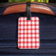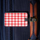 Tag vermelho da bagagem do guingão. Tag customizável bonito da bagagem com um teste padrão vermelho do guingão.