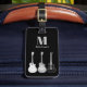 Ilustrações de guitarra semiacústica desenhadas à mão em cinzas, matizes brancas pretas e translúcidas repetindo o padrão em fundo preto. O design perfeito para a estrela legal do rock em sua vida pode ser personalizado adicionando um nome e um monograma iniciais na frente e os detalhes de contato no verso. Perfeito para viajar onde sonhos musicais criativos são nasceres. Ideal para amantes da música especialmente guitarristas. Funky legal Instrumento Musical original de arte criado pela artista Catherine Sweetman