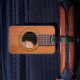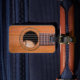 Detalhe a foto da guitarra das cordas e o furo sadio em uma guitarra acústica gasta.
