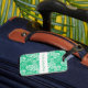 Estou na ilha, a etiqueta de bagagem personalizada mostrada com um impressão havaiano muito tropical com texto. Personalize esta etiqueta ou comprar como está.