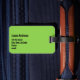 Fique Notado! Engraçado "Ei aqui" preto e branco com etiqueta de bagagem de verde limão com seta realçada e informações de contato de fundos.