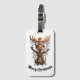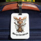 This funny and cute 3D illustration depicts a bewildered-looking moose in a festive mood, wearing a tiny Santa hat. The moose's entire body is covered in strands of colorful Christmas lights wrapped around its large antlers and body. This illustration is perfect for quirky Christmas sweaters, holiday stickers, novelty apparel, or as gifts for nature and wildlife lovers with a sense of humor.