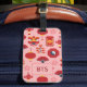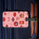 Celebrar o Ano Novo Lunar Chinês com os Ícones de Ano Novo Chinês Personalizados, a Etiqueta de Bagagem de Flor Rosa, com ilustrações festivas e modernas de moedas de ouro, flor, máscara de dançarina de leão, fã, grilhões, símbolo de yang e lanterna em tons de vermelho e ouro em fundo rosa. O texto pode ser atualizado para criar uma etiqueta de bagagem personalizada, fazer-a como um acessório ou presente personalizado perfeito!