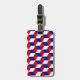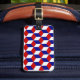 Blocos 3D em vermelho, branco e azul. Eles são empilhados de forma que à medida que você os olha, a ilusão óptica é que eles mudam de orientação. O lado inverso permite personalizar as informações de contato.