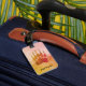 Estilo bonito de desenho animado com pata de urso em um fundo angustiado. Etiquetas de bagagem personalizadas. Edite o nome para personalizar estas etiquetas de bagagem. Ideia para pessoas que amam ursos.