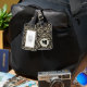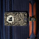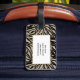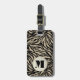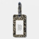 Uma etiqueta de bagagem de na moda apresenta a inicial do seu monograma num padrão de impressão em roxo preto e bege na frente e as informações de endereço impressas no verso OU escolha o estilo que pode inserir o seu cartão de visita no verso. Crie ou dê como presente. Saco de cadeia de tração CORRESPONDENTE e mais itens na nossa coleção de viagem.
