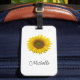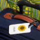 Etiqueta de bagagem do Jardim Botânico Russo com uma imagem de girassol amarelo. As letras pretas podem ser personalizadas com seu próprio texto. Um belo item para sua bagagem ou pasta.