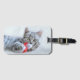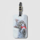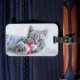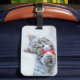 Esta etiqueta de bagagem tem um gatinho bonito nela.