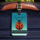 Este design apresenta um padrão de joias em um plano de fundo azul/verde.