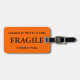 Etiqueta de bagagem com Frágil, manuseie com cuidado, Obrigado. Texto preto sobre fundo laranja. Personalizável. Personalize com seu nome e informações usando os modelos fáceis. A cor da fonte, o estilo da fonte e o tamanho da fonte são personalizáveis.
