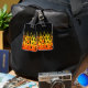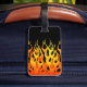 Etiqueta De Bagagem Laranja clássica que compete chamas no fogo