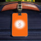 Esta etiqueta da bagagem da laranja de cádmio do monograma é na moda e conservador ao mesmo tempo. Disponível nesta versão onde você personaliza seu endereço no verso, ou em você escolha o Tag opcional da bagagem com um entalhe de cartão de visita. Disponível em outras cores: a cerceta, vermelho indiano, banqueiros esverdeia, amarelo da mostarda, cinza do cardo, azul rico, rosa do arando. Visita zazzle.com/youbeaut.