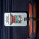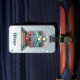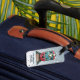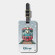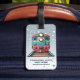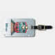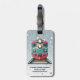 Esta etiqueta personalizada para bagagem apresenta um lindo trem clássico em uma via férrea.