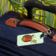 Um lápis colorido de uma maçã verde e vermelha enfeita esta etiqueta de bagagem personalizável!