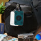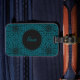 This cool luggage tag boasts a vibrant teal background with a sleek black mandala pattern and a customizable circle for your name! It'll make your bags stand out in style.