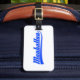 Manhattan, Nova Iorque, escrito com uma haste (cauda). Fontes em branco e azul. Design de texto original.