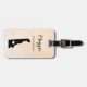 Estas etiquetas de bagagem estaduais são a escolha perfeita para etiquetas de presente da festa de casamento ou etiquetas para sacolas de boas-vindas. Amarre-a aos presentes das damas de honra em vez de uma etiqueta de presente de papel típica, e elas poderão usá-la por meses e anos. As etiquetas têm um fundo de aquarela em tom de pêssego alperce. Para colocar o coração no local do casamento, use a opção "personalizar ainda mais".
