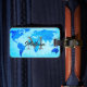 Etiqueta De Bagagem Mapa Mundial Monogramas Artísticos Azuis Nome Pres