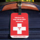 Medical Equipment Luggage Tag with message handle with care in red. It is perfect for anyone transporting medical equipment, for a medic, a health professional or a diabetic. The perfect luggage identifier to display on your luggage and have everyone handle with care. This medical alert label will keep your medical equipment easy to identify.
