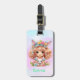 Lindas cores pastéis com uma garota segurando um coelhinho nesta etiqueta de bagagem para seu viagem podem ser personalizadas com seu nome de meninas