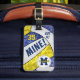 Esta etiqueta de mala de voleibol azul e dourado para raparigas pode ser personalizada com o seu nome, monograma e número de camisola num vôlei azul, dourado e branco em película com texto tipográfico ousado que diz "Mine!" e "Peguei!" - os painéis azul e dourado do voleibol são misturados com um bonito padrão caleidoscópico floral e os painéis brancos de voleibol são misturados com uma espiral padrão para uma aparência texturizada que é artística e feminina - personalize o dorso com seu nome, endereço, número de telefone - por katz_d_zynes
