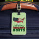 Personalize facilmente essas etiquetas de bagagem clicando nas caixas de texto à direita do design. Húngaro Roots design, com um mapa dos EUA com bandeiras Húngaras e Americanas.
