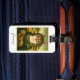 Esta mala divertida traz uma homenagem à obra-prima de Leonardo da Vinci, "Mona Lisa" - o sorriso mais famoso do mundo! Este design inclui um nome personalizado na parte frontal em caracteres de script na moda e seus detalhes de contato no verso.