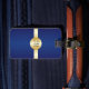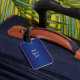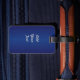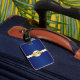 Etiqueta de bagagens monograma. Você pode personalizar esta etiqueta de mala com qualquer texto de sua escolha. Se precisar de ajuda para personalizar, entre em contato conosco através do link desta página. Etiqueta de bagagem azul e dourada.