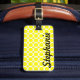 Etiqueta De Bagagem Monograma amarelo de néon das bolinhas