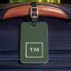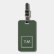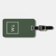 Etiqueta de bagagem verde personalizável elegante com quadro branco e monograma em negrito.