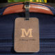 Couro castanho moderno, guião, etiqueta monográfica. Personalize-o com o seu nome e nome iniciais.