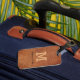 Couro castanho moderno, guião, etiqueta monográfica. Personalize-o com o seu nome e nome iniciais.