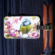 É primavera, então os pássaros estão cantando e as flores estão florescendo. Um monograma cor-de-rosa se esconde entre as flores.