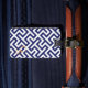 O design branco-chave na moda elegante, elegante-esverdeado, azul-esverdeado-esverdeado-esverdeado-branco, o simples padrão geométrico moderno grego-chave, em azul-esbranquiçado-branco, dá a este design limpo e ousado um aspecto contemporâneo e clássico. Legal presentes únicos para ele. Personalize o monograma personalizado com suas próprias iniciais ou nome, você também pode clicar no botão "personalizar!" em fotos do produto para editar a cor e a fonte das iniciais!
