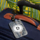 Não se esgueire dos seus viagens! Dividam essa tensão na sua etiqueta de bagagem com este calcário e design de quartzita! Sua inicial e seu nome vão para o círculo central. Basta inserir suas informações acima!