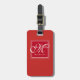 Etiqueta De Bagagem Monograma de Script Branco e Vermelho Clássico