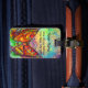 ETIQUETA DE BAGAGEM MONOGRAMA DOURADA AMARELO AZUL VERMELHO COM MANTEI
