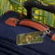 Esta elegante etiqueta de bagagem apresenta uma imagem de fundo da mármore verde-oliva embelezada com veias douradas. Personalize-o com o seu monograma inicial em serifa verde-oliva num retângulo de metal esfregado com dois bordos dourados. Adicione seu nome e informações de contato ao verso em branco sobre um fundo verde-oliva.